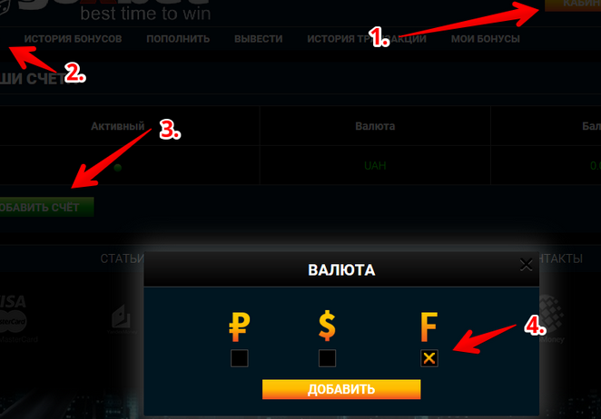 • регистрация аккаунта на сайте казино;